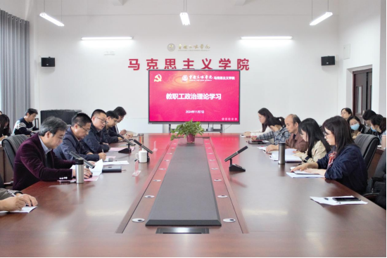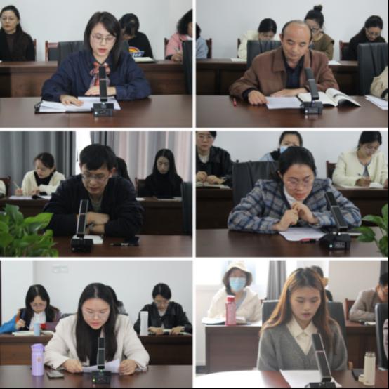廖艳燕、徐学林、李哲武、雷雪、王迪、谢英等思政课教师围绕政治理论学习主题并结合本职工作进行研讨交流。