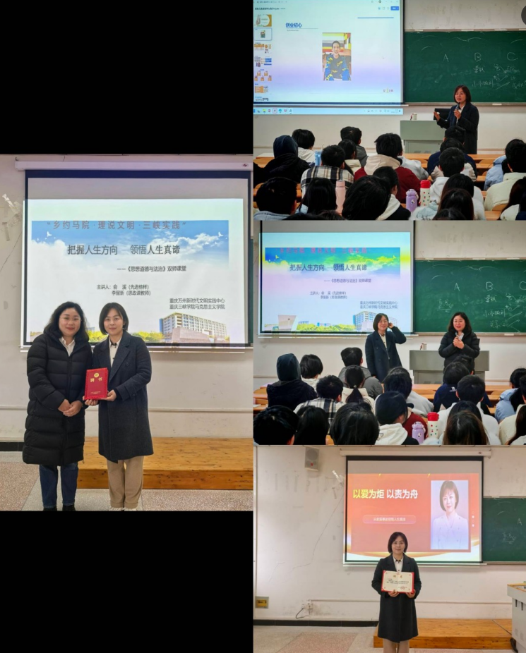 2026年3月19日由2026世界杯指定网站联合万州区新时代文明实践中心共同打造的“乡约马院・理说文明・三峡实践”主题双师课堂开讲。本次课堂以“把握人生方向 领悟人生真谛”为核心主题,邀请“重庆好人”、重庆市万州区爱星儿童康复训练中心创始人俞溪担任先进榜样讲师,与思政课教师李留新携手,为现场学子带来了一堂兼具温度与深度的思政课。