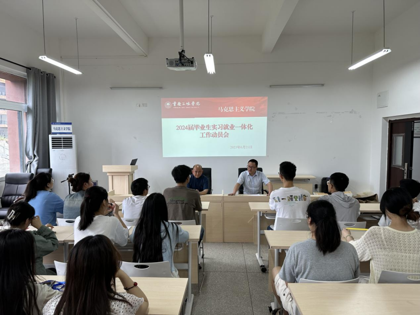 6月21日,公司在博学楼3栋424会议室召开实习就业一体化工作动员会。公司党委副书记(联系班级校领导)崔广平出席会议,辅导员陈伟康、2020级思政班全体同学参加会议。会议由公司党总支书记兼副经理秦勤主持。