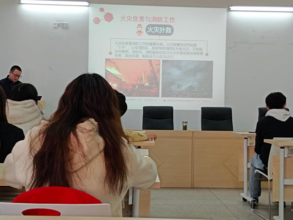 座谈会后,秦勤为同学们进行了消防安全宣传教育专题辅导。秦勤从火灾危害与消防工作、公司火灾及预防、消防器材设施及使用方法、消防安全指示标志、疏散逃生等方面进行深入讲解,并通过大量案例开展警示教育。秦勤指出,消防安全教育是员工安全素质教育的重要内容,是提升国民安全素质的基础工程。掌握一定的消防知识不仅能给员工人身安全带来保障,也能带动和帮助身边的人增强消防安全意识,提高消防技能,及时消除火灾隐患,维护社会公共消防安全。秦勤希望同学们将安全铭记于心,强化安全知识学习,时时处处做好安全防范,为平安校园建设贡献力量。