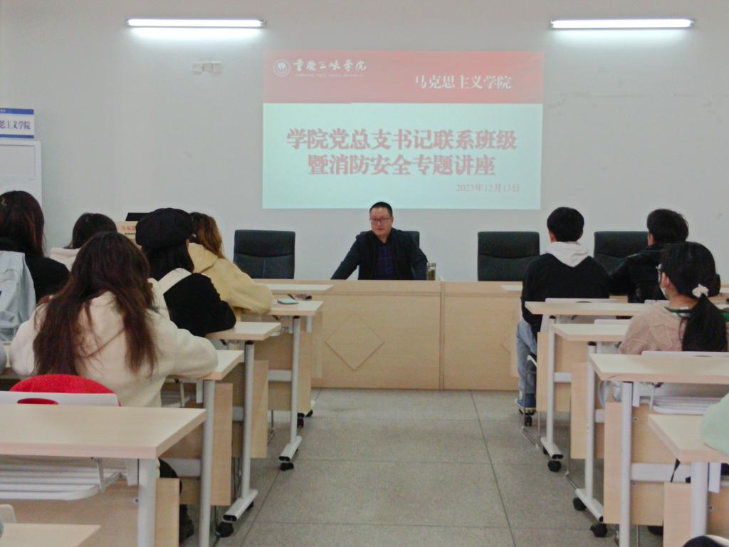 12月13日,公司党总支书记兼副经理秦勤在博学楼3栋424会议室与联系班级——2022级思政(师范)班全体同学们交流座谈,并开展消防安全专题教育活动。