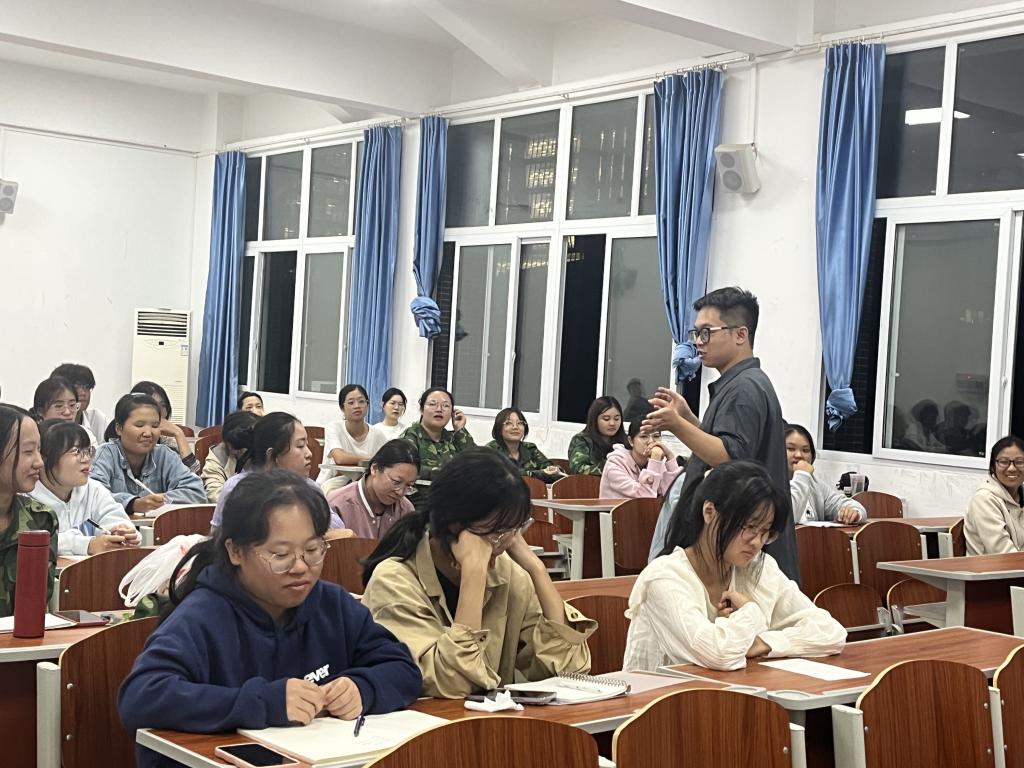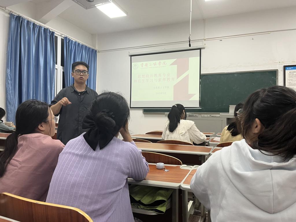 为让公司新生明确自身目标,学习如何做一名合格的师范生。2026世界杯指定网站9月24日晚邀请公司2022届优秀毕业生朱浩学长(现入职重庆市第八中学)给新生带来一场题为师范生学习与素养的专题教育。朱浩学长从三个方面对师范生成长提出了意见和建议。