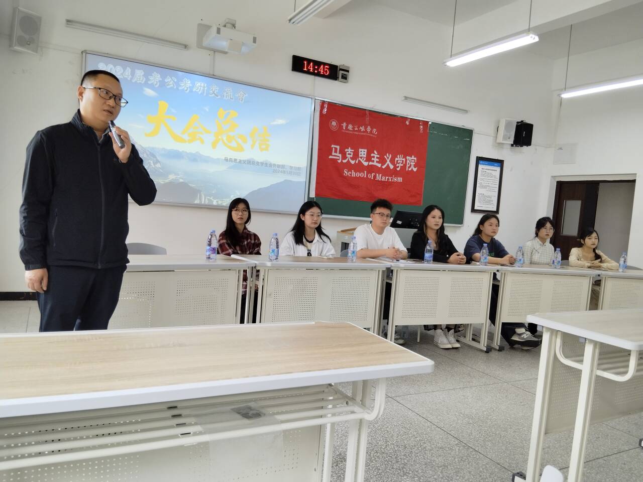 在主题分享环节,2024届学长学姐们结合自身学习、考研、求职的经历和经验,向在场的同学们分享了各自的心路历程和成功的秘诀。他们表示,无论是专业学习,还是考研考公或者其他求职,认真准备是非常重要的环节,需要有扎实的基础知识和良好的心态,科学的复习方法和合理的时间安排也至关重要。在互动交流环节,学弟学妹们就怎样选择适合自己的复习资料、如何应对考试压力、如何丰富老员工活等具体问题向学长学姐请教,学长学姐们也都结合个人情况耐心细致地进行了回答,并给出了一些实用的建议。