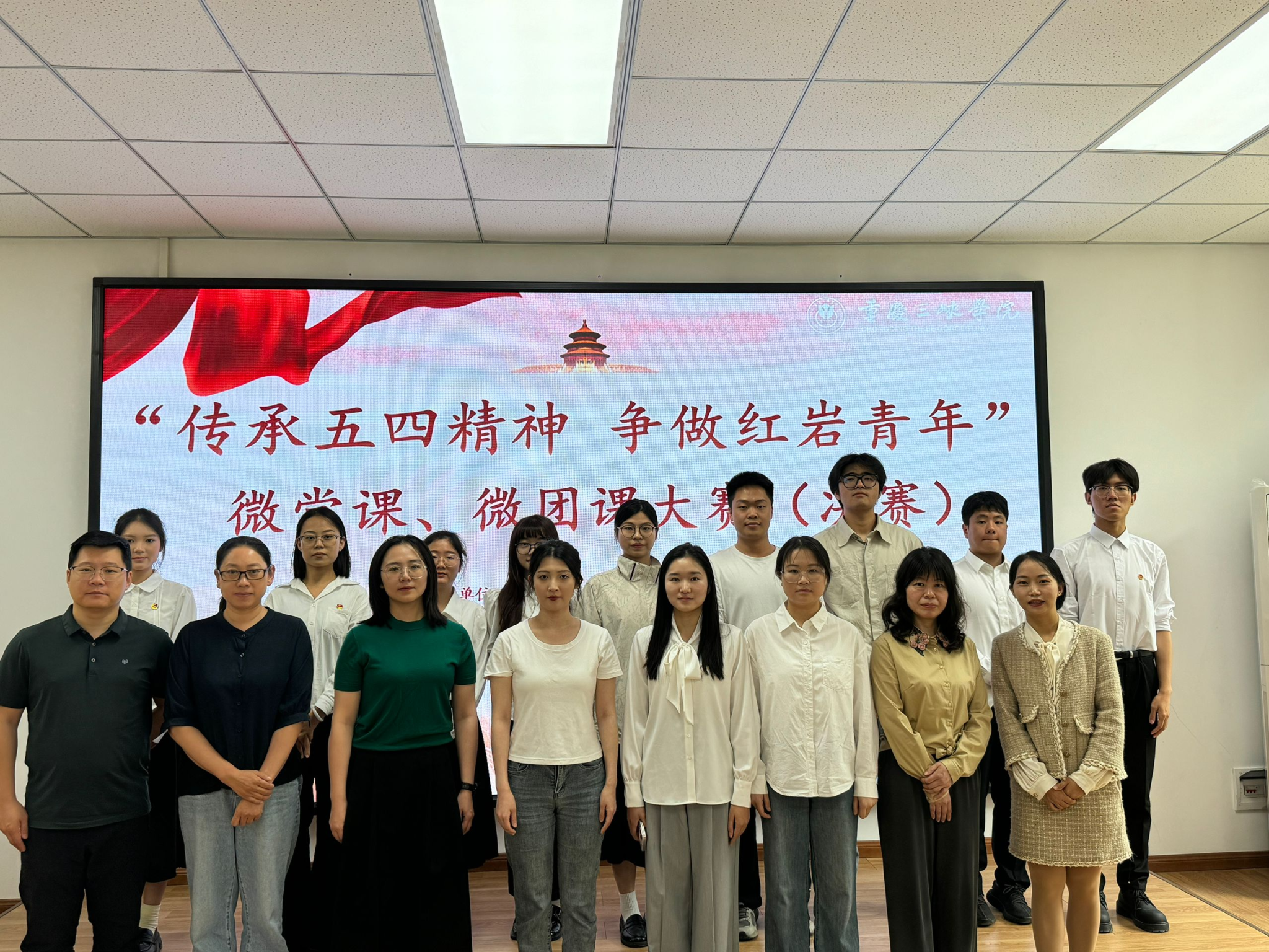决赛现场,各参赛队伍紧扣主题,结合专业特色,在规定的6-8分钟内,以生动的语言、鲜活的案例和精美的课件,精彩讲述了党的创新理论、五四精神的时代内涵以及红岩精神的深刻价值,展现了扎实的理论功底和良好的教学风采。讲演结束后,评委们围绕讲演内容进行提问,选手们思维敏捷、沉着应答。每四组展示后,现场公布得分,赛程紧凑有序。